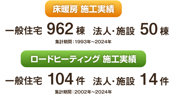 当社の床暖房とロードヒーティングは、秋田県内の工務店様からも推奨いただいており、 一般住宅のみならず、店舗様、保育園様、学童保育施設様、病院様、福祉施設様、お寺様などでも ご採用いただいております。